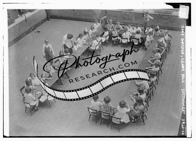 Roof Garden,Lenox Hill Settlement,children seated at tables,Bain News Service