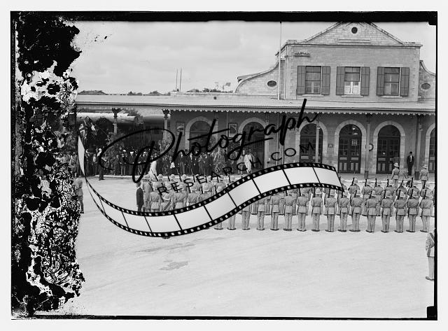 British & Arabs greeting VIP,Jerusalem Railroad Station,Israel,Middle East,1