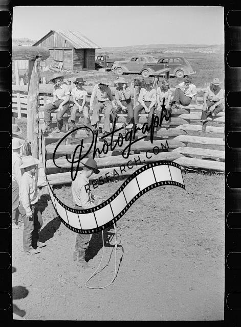 Roping a Colt for Branding,Quarter Circle U Roundup,Montana,MT,June 1939,FSA,5 1