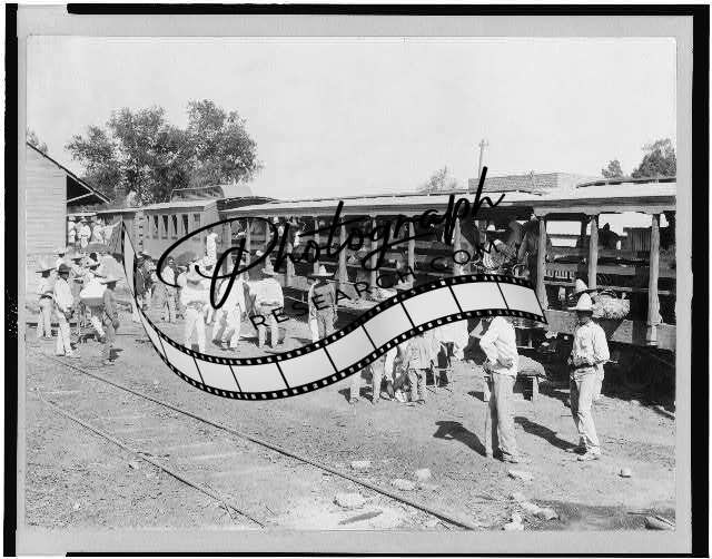 Men outside Train stopped at Station,Railroad,RR,Altata Railway,Navolato,Mexico