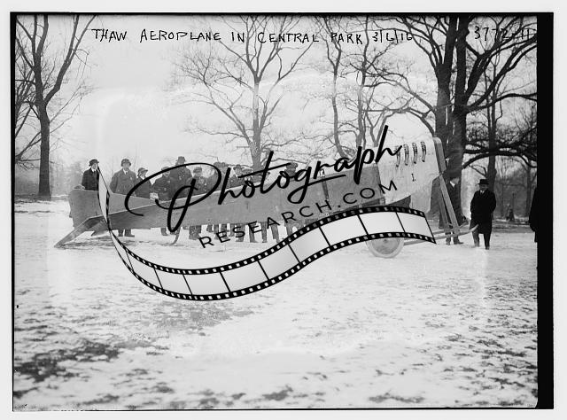Thaw Aeroplane in Central Park,March 6,1916,airplane,aviation,people,snow