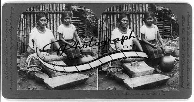 Making tortillas,Salvador,C.A.,two women seated outdoors,c1905,Photograph