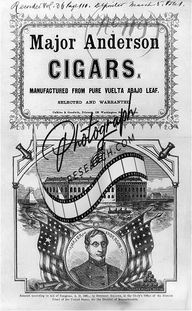 Summary: Print shows tobacco label with illustration of Zachary Taylor directing Capt. Braxton Bragg to 'Give'em more grape' at Battle of Buena Vista.
