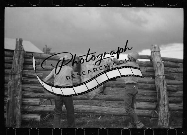 Butchering a cow,Quarter Circle U Ranch,Montana,MT,Arthur Rothstein,1939,FSA,2