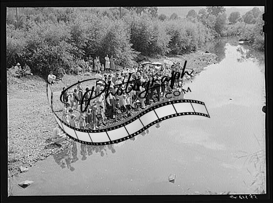 Title: Members of the Primitive Baptist Church in Morehead, Kentucky, attending a creek baptizing by submersion