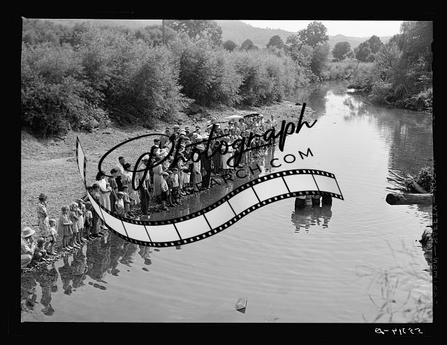Title: Members of the Primitive Baptist Church in Morehead, Kentucky, attending a creek baptizing by submersion