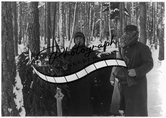 2 men of Goering's hunting party standing in blind, Bialowiecza, Poland