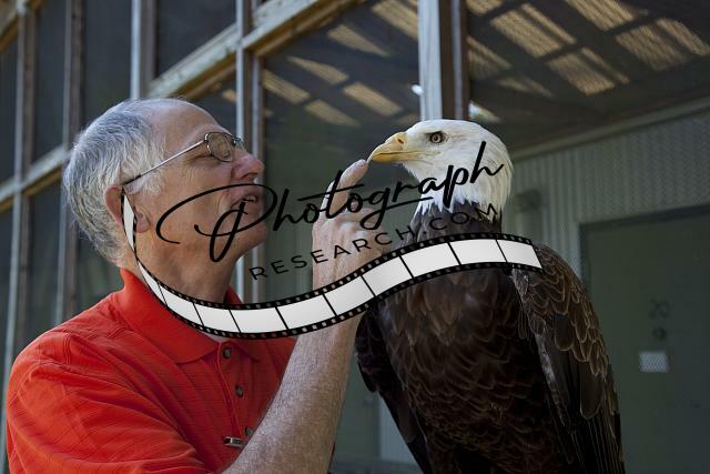 Title: Roy Clay Crowe poses with eagles who are brought into the Southeastern Raptor Rebilitation Center, University of Auburn, Alabama