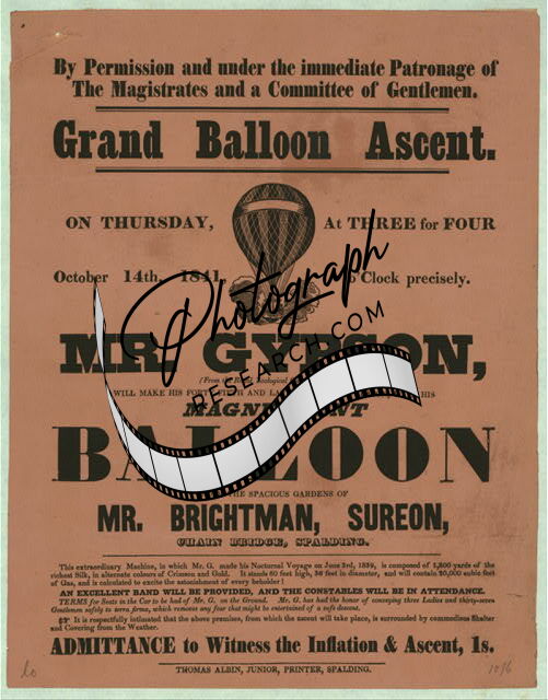 Summary: Broadside announcing Charles Green's ascension in the balloon 'Nassau' from Vauxhall Gardens, London. Includes a picture of passengers in a balloon basket.