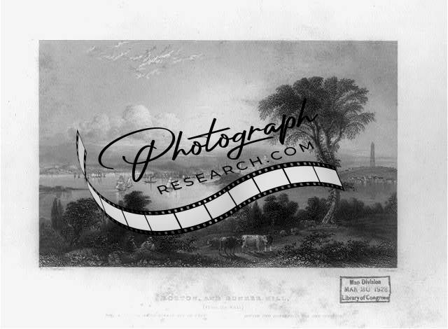Boston,Bunker Hill,from east,harbors,boats,docks,piers,WH Bartlett,C Cousen,1839