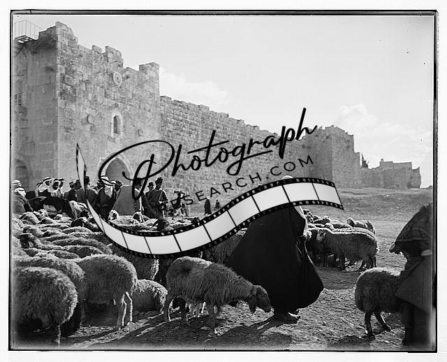 Sheep market outside Herod's Gate,Jerusalem,Israel,Middle East,1898-1946