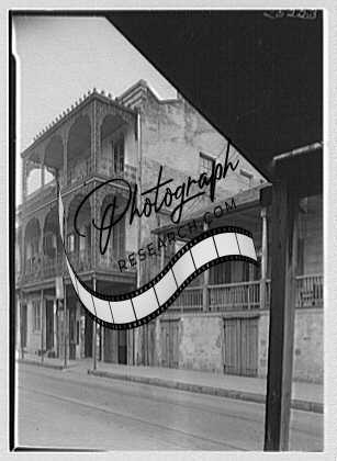 Title: New Orleans photographs. Oblique shot of Royal St. balconies