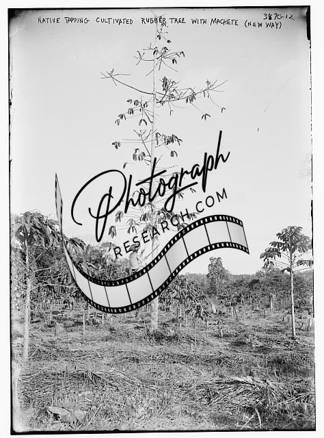 Photograph of Tapping Cultivated Rubber Tree with Machete (New Way),Bain News
