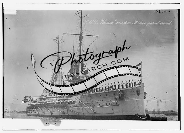 German battleship KAISER passing in review for the Kaiser,ship,vessel,Bain News