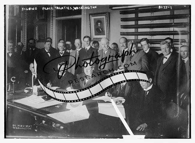 Signing Peace Treaties,Washington,Bain News Service,men gathered,desk