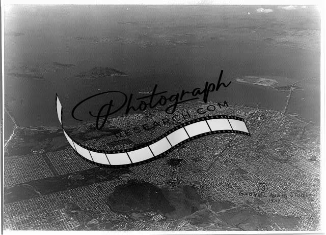 Air view,Golden Gate Bridge,San Francisco,Oakland,Bridge,California,CA,c1937