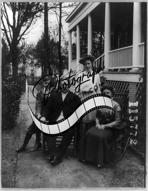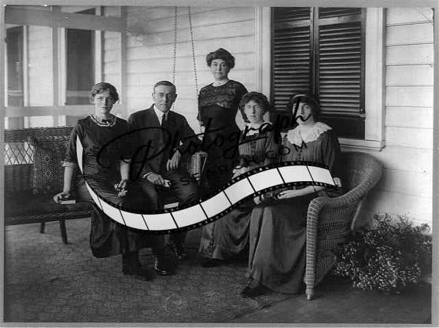 Woodrow Wilson,President,posed,swing,porch,wife,three daughters,family,c1912