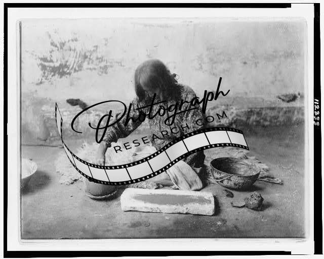 Zuni potter,Indian Woman kneeling on animal skin floor,making pottery,c1903