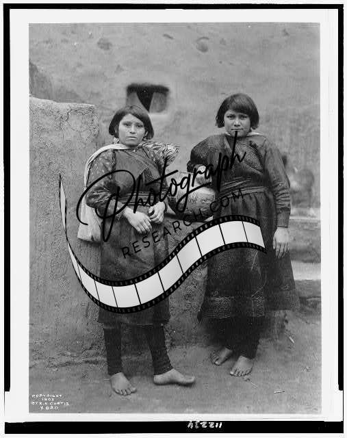 Zuni girls,Indian,pueblo buildings,New Mexico,NM,c1903,Edward S Curtis,Photo