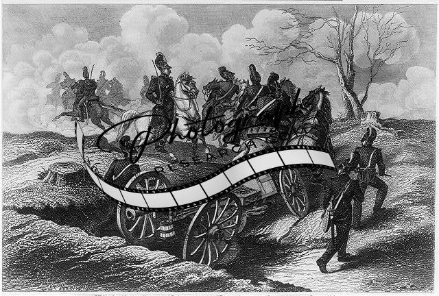 Prussian? horse-drawn field artillery unit changing position,1840's?,Heck