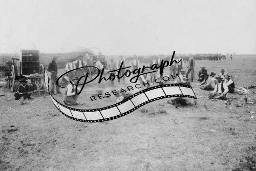 Breakfast ready,Cowboys having breakfast,herd of horses,c1905,Chuckwagon