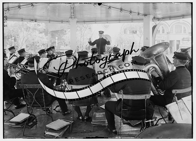 Pryor Orchestra,musical instruments,sheet music,ensemble,outdoor structures