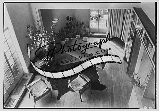 Title: Russel Wright, residence at 7 Park Ave., New York City. Living room, to bookcases I