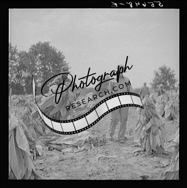 Title: Cutting burley tobacco and putting it on sticks to wilt before taking it into curling and drying barn. Russell Spears' farm near Lexington, Kentucky