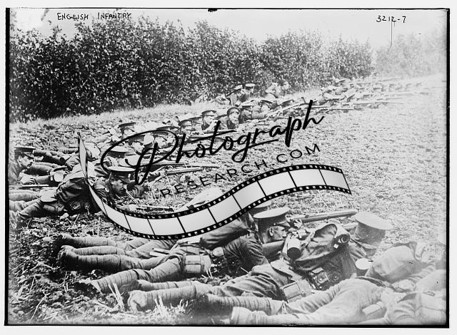 England Infantry,soldiers on ground,guns,Bain News Service,Military