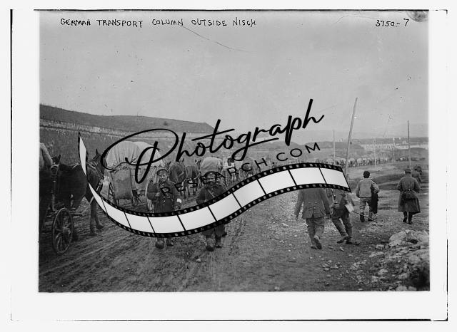 German Transport column outside Nisch,horse drawn wagons,men,Bain News