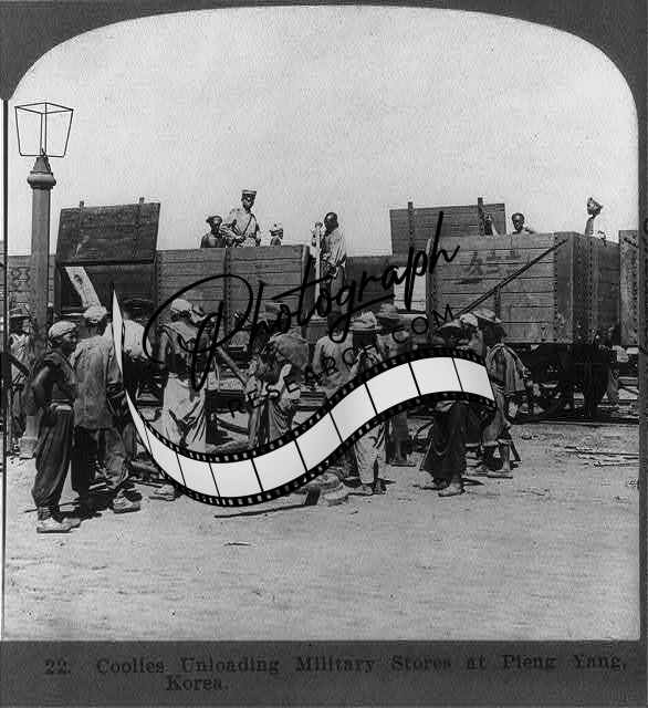 Coolies unloading military stores at Pieng Yang,Korea,c 1904