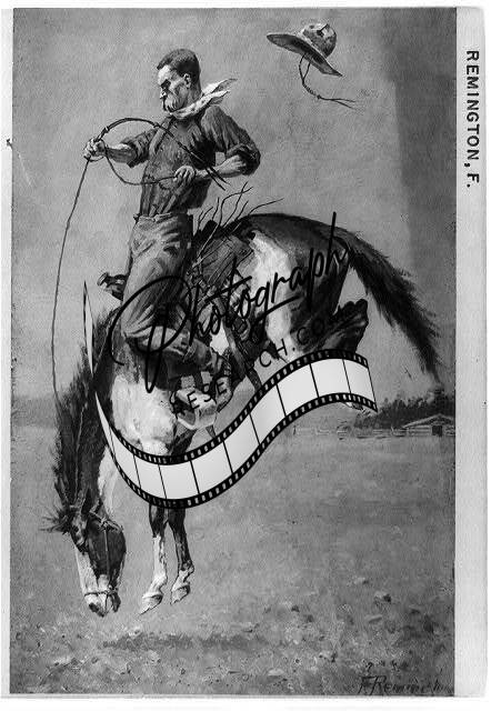 Bucking bronco,cowboy,horseback riding,hat,saddle,horses,F Remington,c1908