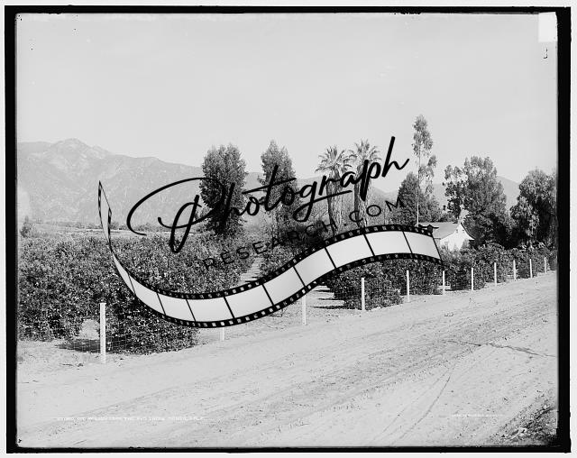Mount Wilson,Old Shorb Ranch,orange orchards,mountains,roads,California,CA,1900