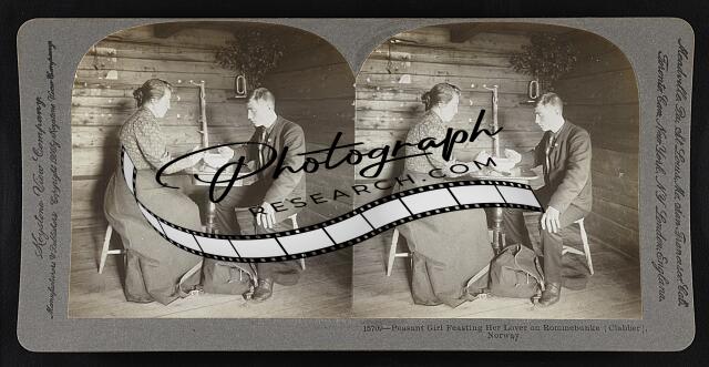 Peasant girl feasting her lover on Rommebunke (Clabber), Norway