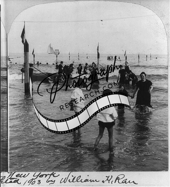A Dip in the Ocean,Coney Island,New York,c1904,Children Wading,Beach,Swimming