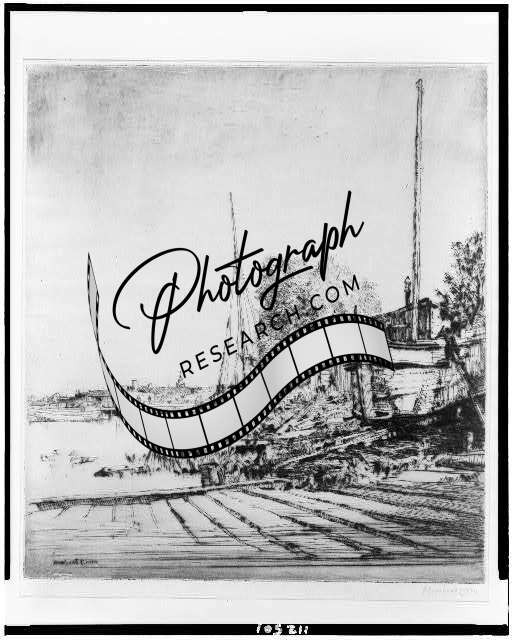 Fosse,Lincoln,England,Pier,Harbor,Muirhead Bone,1905,Ships