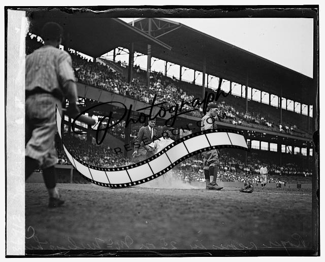 Yankees Babe Ruth out at third,Lou Gehrig single,Ossie Bluege,Baseball,1925