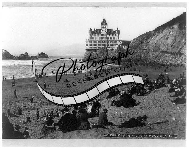 The beach,Cliff House,San Francisco,California,CA,c1902,Beach,umbrellas