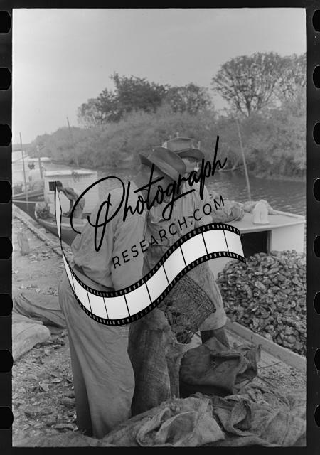 Sacking oysters,Olga,Louisiana,LA,Farm Security Administration,FSA,1938,1