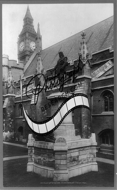 Houses of Parliament,Oliver Cromwell's statue,sculptures,London,England,1890