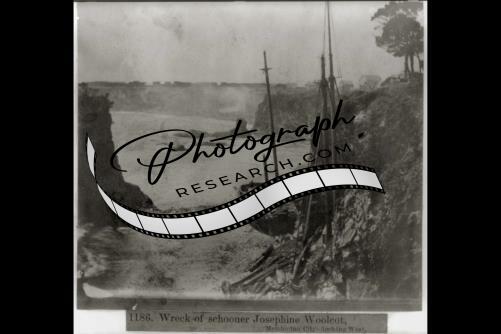 Wreck of schooner JOSEPHINE WOOLCOT,Mendocino City,looking West,1866,California
