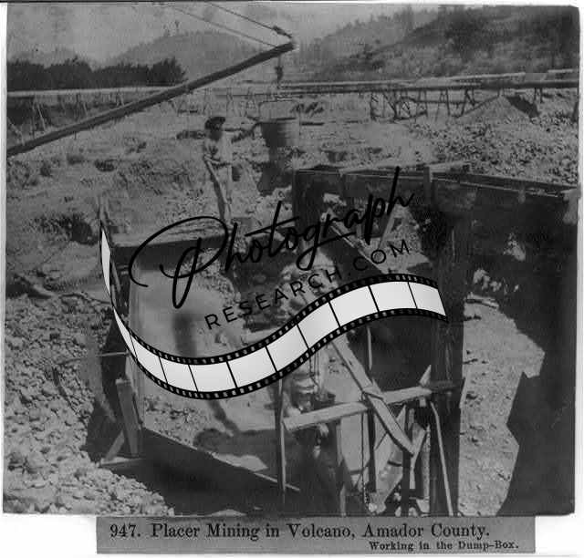 Placer mining in Volcano,Amador County,working in the Dump-Box,California,1866