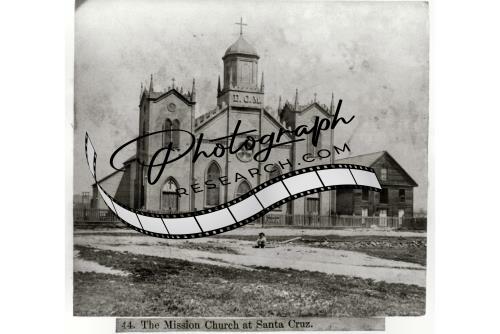 The Mission Church at Santa Cruz,California,CA,1866,little boy in front