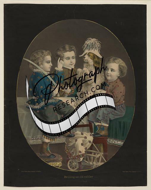 Drilling an Old Soldier,Little Boys,Children at Play,Pet Dog,Animal,Sword