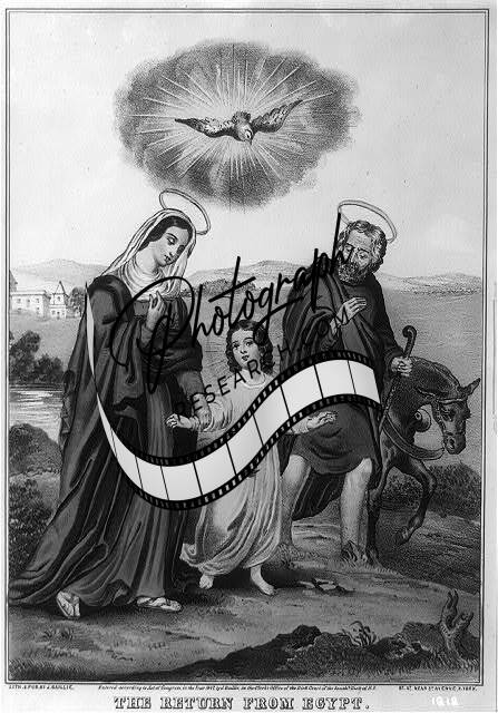 The return from Egypt,December 29,c1847,bird,man,woman,child,halos,Religious?