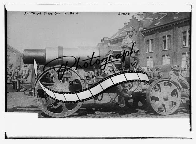 Austrian Siege gun in Belgium,artillery,soldiers,Bain News Service