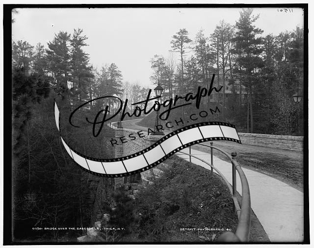 Bridge,cliffs,rocks,water bodies,Cascadilla Creek,Ithaca,New York,NY,c1900