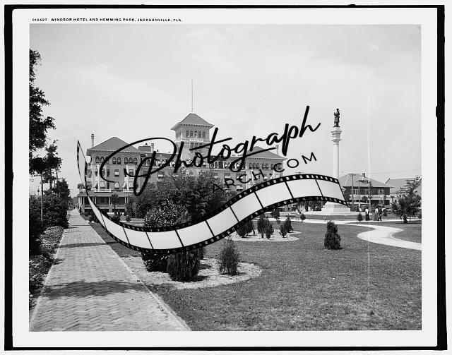 Windsor Hotel,resorts,buildings,statues,Hemming Park,Jacksonville,Florida,c1903