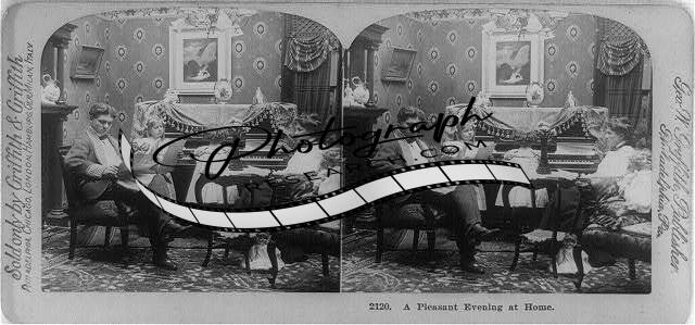 Photo of Stereograph,Pleasant Evening at Home,Family,Domestic Life,Piano,c1902