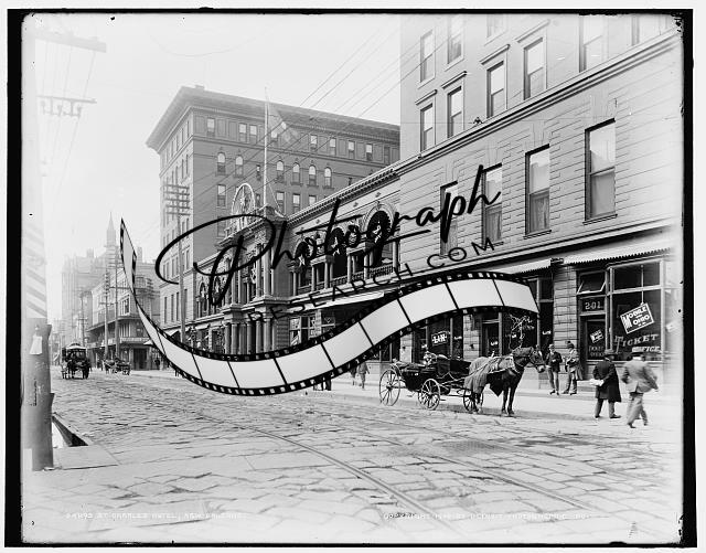 Saint Charles Hotel,resorts,buildings,cobblestone streets,New Orleans,LA,c1900